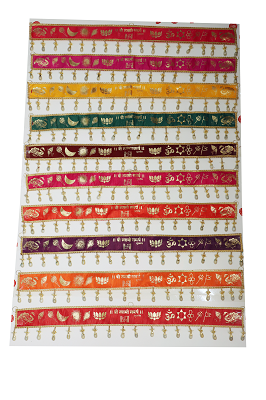 A door hanging (toran) with auspicious symbols like cowries, lotus, and rudraksha is said to enhance energy, foster business growth, and bring peace.